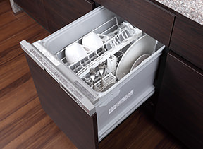 約40点の食器を一度にセット可能。節水性にも優れ、食器の洗浄から乾燥までスピーディーに行います。