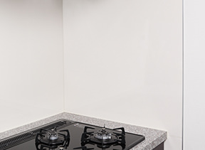 コンロ前のキッチンパネルは目地が少なく、油汚れなども拭き取りやすい仕様となっています。