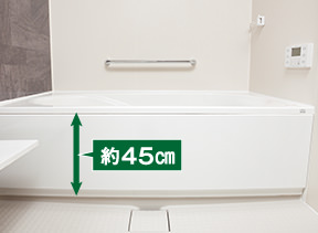 縁が低いタイプの浴槽を採用。またぎやすい高さに抑えることで入浴時の安全に配慮されています。