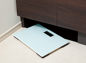 洗面化粧台下部を有効利用したヘルスメーターがすっきりと収納できるスペースです。