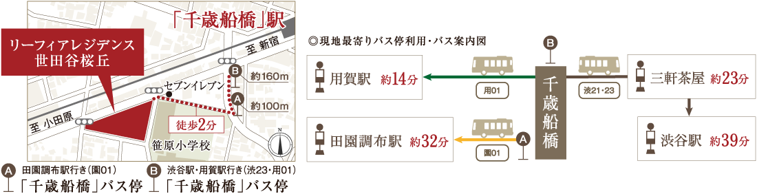 また「渋谷」駅からは「千歳船橋」バス停まで深夜バスが運行しているので終電を逃してしまった時のご帰宅も安心です。
