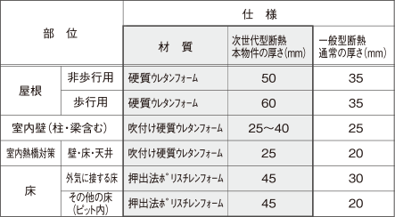 【断熱部位と断熱材の仕様等】