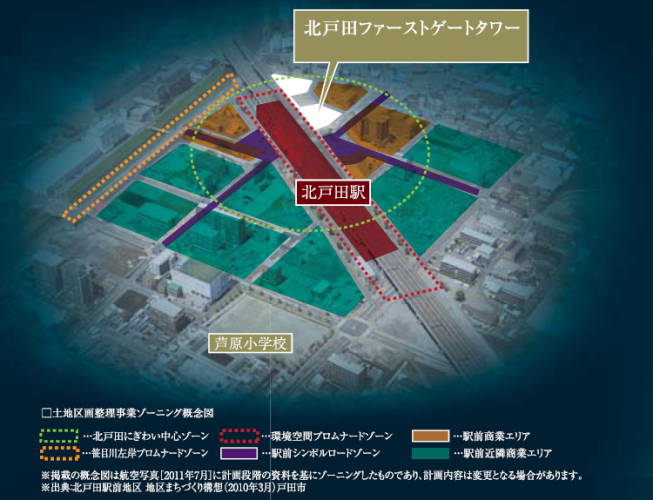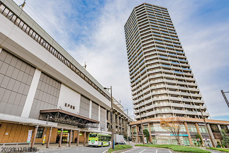 「北戸田」駅周辺では、「文化が香る潤いとにぎわいのある美しいまち」を目指して都市再生整備が行われ、ユニバーサルデザインや緑化が取り入れられるなど、心地良く暮らせる街づくりが実現されています。さらに「北戸田」駅前では、個性と魅力ある街並形成のために「市街地再開発事業」が実施されました。住宅・商業の複合開発である〈北戸田ファーストゲートタワー〉は、戸田市初のタワーマンションとして街全体を印象付ける都市景観を創出しています。